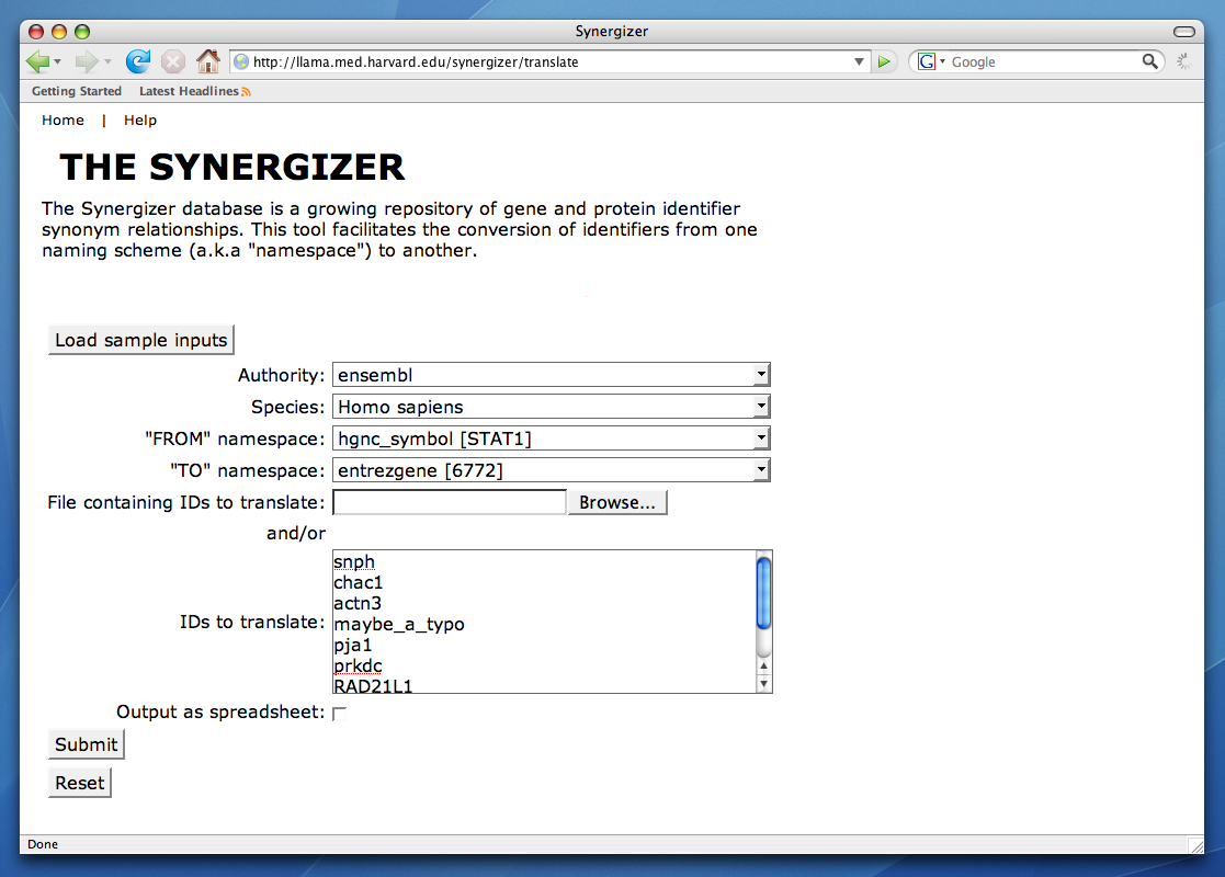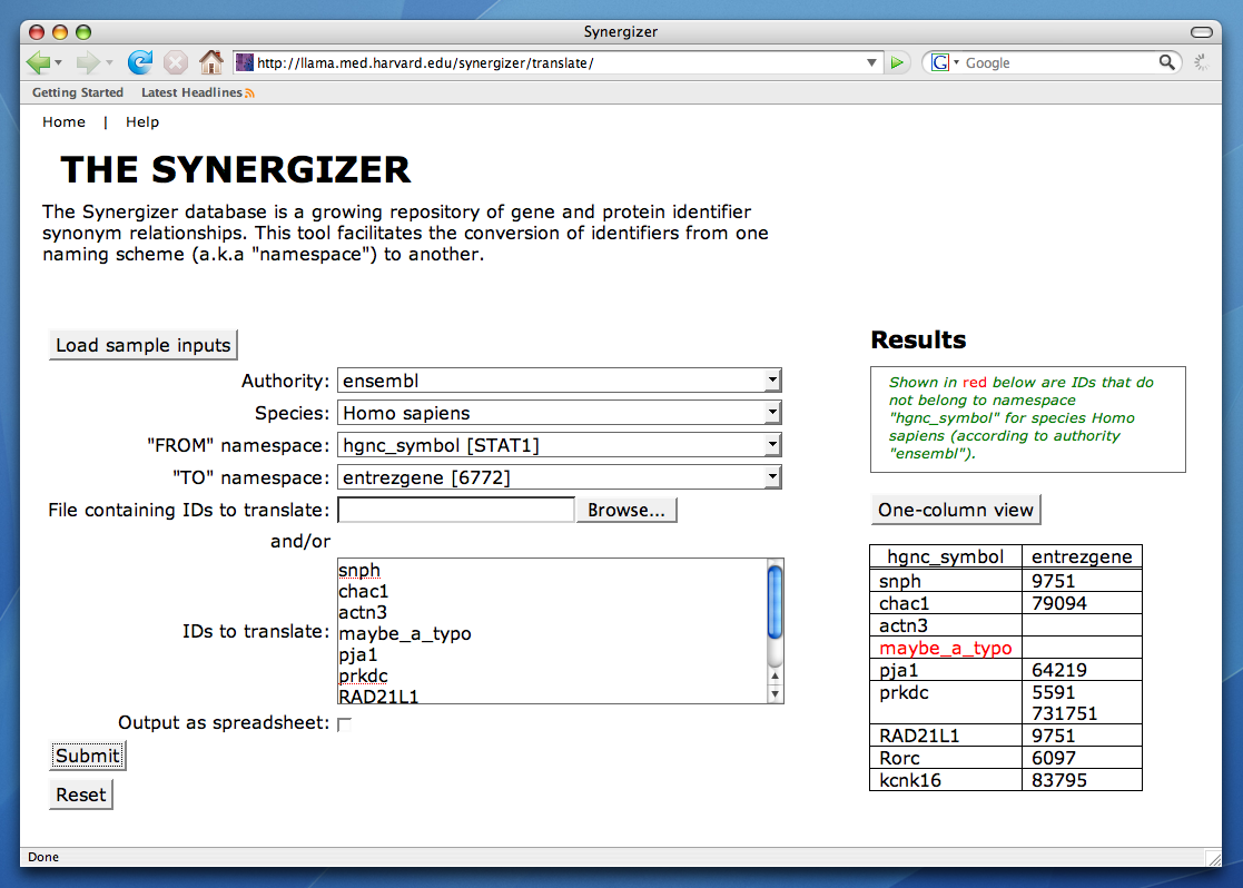 The Synergizer's interactive web interface is the quickest way to become acquainted with the Synergizer service. It is available at